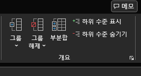 - 그룹으로 묶고 싶은 행이나 열을 선택해요